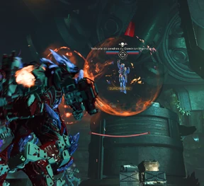 Tuez les quelques membres du Dominion qui se trouvent sur votre chemin afin de rentrer dans la dernière grande salle avec un tube en son centre, protégé par une multitude de tourelles. Pour continuer d'avancer, vous devez activer l'anomalie qui se trouve au sommet en y amenant 12 échos dispersés dans les airs. L'anomalie activée, la porte du tube s'ouvre et vous pouvez continuer votre ascension.