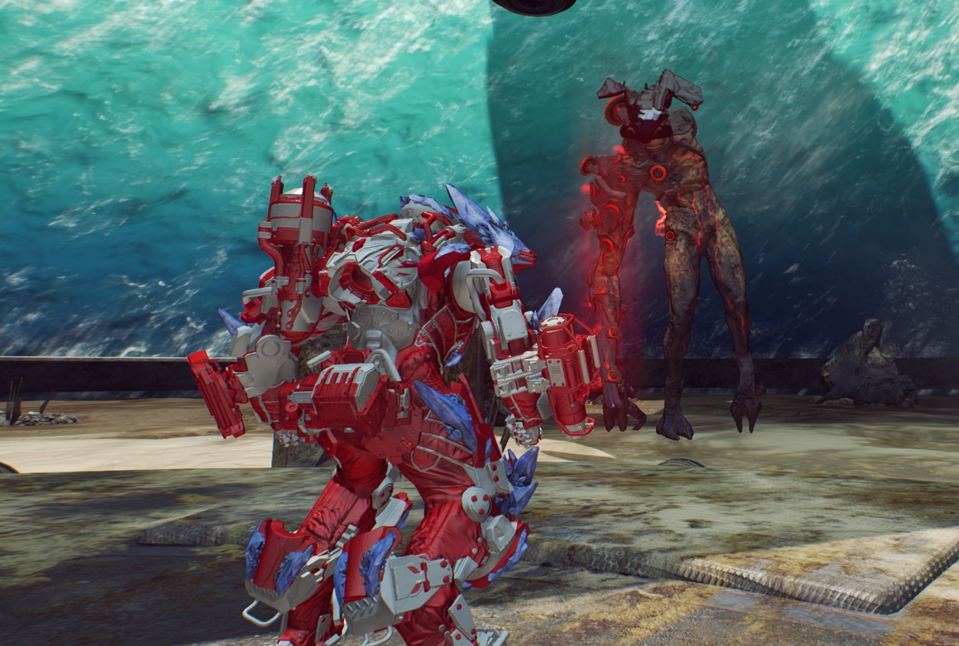 Vous venez d'entrer dans le bâtiment expérimental sous-marin d'Harken. En descendant tout de suite à l'entrée, vous trouvez un suppresseur de vol situé au centre d'une grande salle et protégé par des tourelles du Dominion. Pour le désactiver, vous devez rester dans la zone du signal tout en empêchant les forces du Dominion qui tentent de vous arrêter jusqu'à ce que le suppresseur soit désactivé. Continuez ensuite votre chemin tout en tuant les ennemis qui s'interposent.