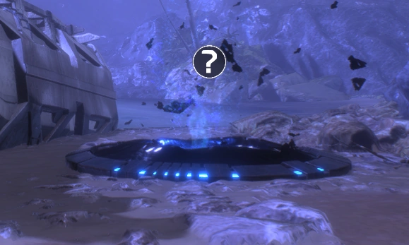 - Fly and then swim to the teleportation pad and interact with it.
