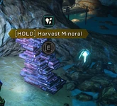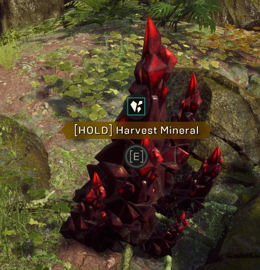 There are 3 minerals which can be harvested by interacting or destroying. The mineral nodes which can be harvested, provide Chimeric Alloy. They occasionally provide Embers.