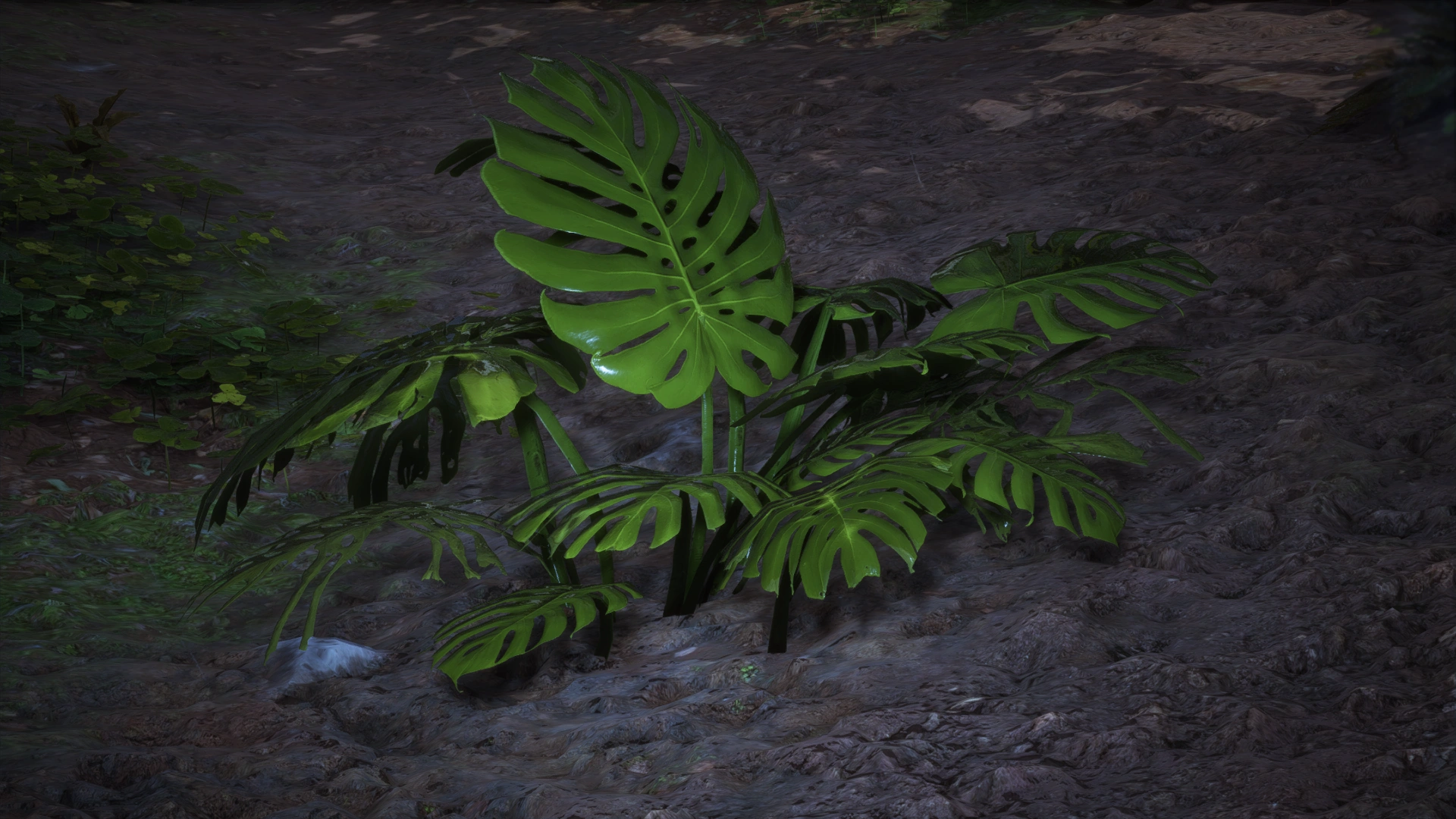 Monstera plants have been found all across Northern Bastion, especially in forest locations. They tend to grow away from water rich sources. However, because of their distinctly shaped leaves, which make them stand out among other shrubs. The Freelancer can encounter these shrubs while flying across Bastion. They turn red during the winter season.
