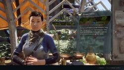 - Sentinel Brin: "Yes. Oh! Speaking of which, the other Sentinels and I were talking. There’s this Sentinel tradition. If you’d like, you could join us? At the bar. In the fort."
