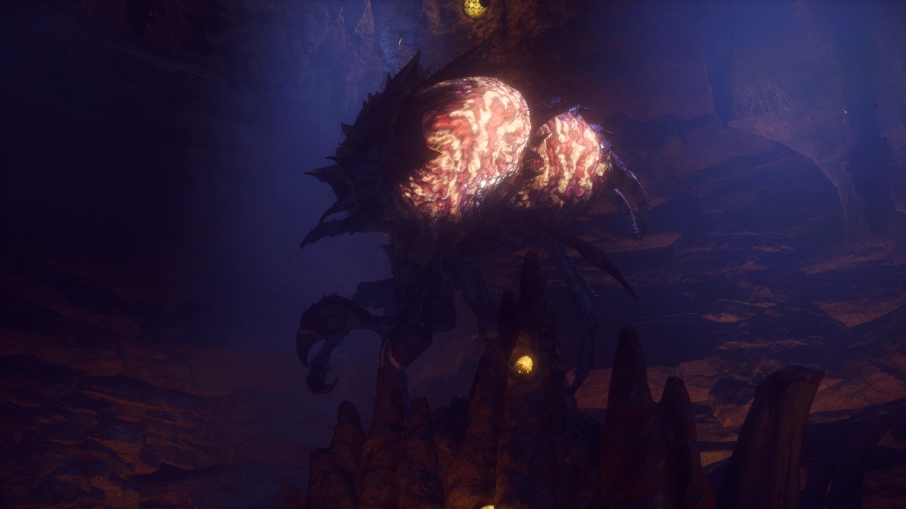 Finally, when each bulbous sac is ruptured, the Swarm Tyrant will collapse to the ground. But just because the sacs have been destroyed, doesn’t mean its weak points have disappeared. The hollowed-out spaces where the sacs once were, become new weak points. But doing damage to these spaces will not make the Tyrant collapse.